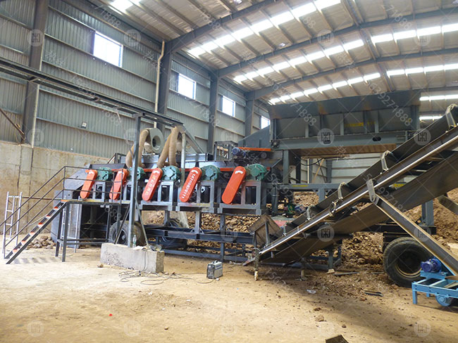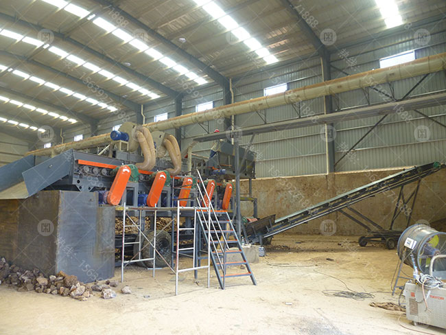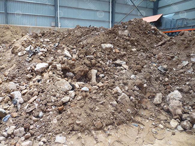 該用戶原料主要來源于建筑固廢,原料黏土較多,里面夾雜的雜物也較多,如:塑料、鋼筋、泡沫等輕物質(zhì)。經(jīng)公司技術(shù)部門研究,在泥石分離機的基礎(chǔ)上增加了風機、打散、除鐵等裝置,來有效進行對該復(fù)雜的物料進行分選。