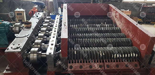 本系列輥軸篩是由輥道電機單獨驅(qū)動的多根篩軸組成的滾動篩面,每根篩軸上裝有篩片,篩軸與減速機用過載聯(lián)軸器聯(lián)接,既起過載保護作用,又便于維修。在滾軸篩的入口端裝有電動擋板,物料既可通過篩面進行篩分,又可以經(jīng)旁路通過。
