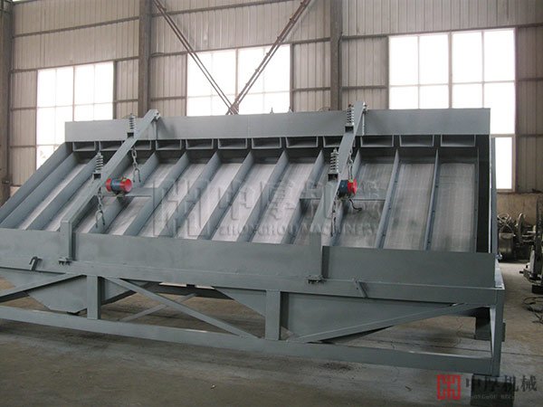 2、激振器通過傳動(dòng)機(jī)構(gòu)驅(qū)動(dòng)篩面作高頻振動(dòng)、篩箱靜止。振動(dòng)系統(tǒng)設(shè)計(jì)在近共振狀態(tài)工作,整機(jī)經(jīng)過減振支承,使地面基本不承受動(dòng)載荷,篩機(jī)不需要制做基礎(chǔ),直接安裝在堅(jiān)實(shí)平整的地面上或普通鋼結(jié)構(gòu)平臺(tái)即可正常工作。