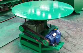 電動(dòng)機(jī)經(jīng)聯(lián)軸器通過(guò)減速機(jī)帶動(dòng)圓盤(pán)。圓盤(pán)轉(zhuǎn)動(dòng)時(shí),料倉(cāng)內(nèi)的物料隨著圓盤(pán)一起移動(dòng),并向出料口的一方移動(dòng),經(jīng)閘門(mén)或刮刀排出物料,排出量的大小可用刮刀裝置或閘門(mén)來(lái)調(diào)節(jié)。