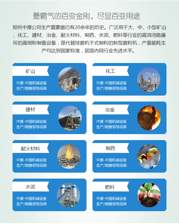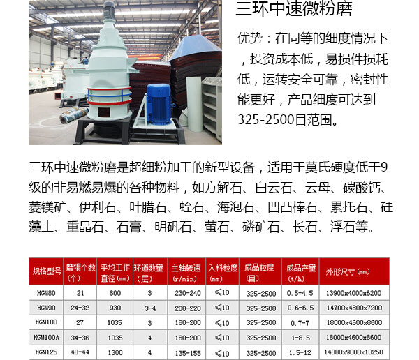產(chǎn)品介紹:主要用于重晶石、方解石、金剛砂、碳化硅、鉀長(zhǎng)石、大理石、石灰石、白云石、螢石、石灰、鈦白粉、活性炭、膨潤(rùn)土、高嶺土、白水泥、輕質(zhì)碳酸鈣、錳礦、煤矸石、石油焦等莫氏硬度不大于7級(jí),濕度在6%以下的非易燃易爆物料制粉,成品60-1000目范圍內(nèi)調(diào)節(jié)。